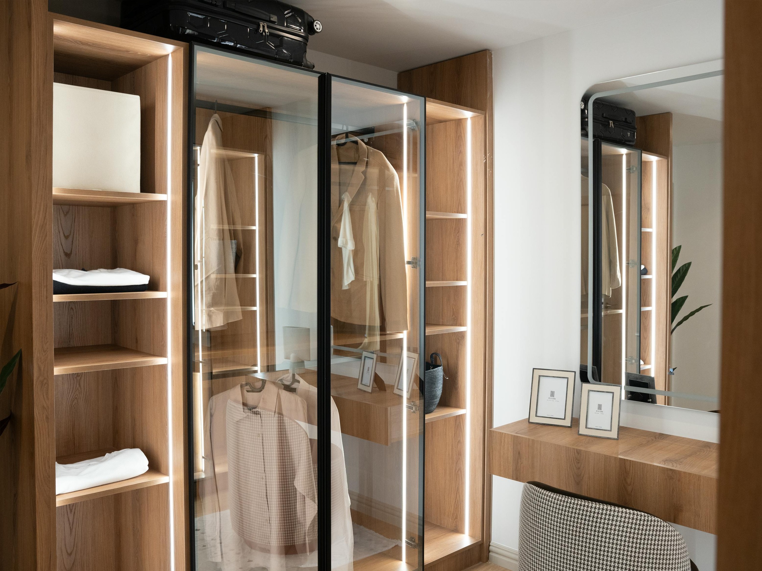Custom-designed walk-in spaces that combine organised storage with balanced layouts and refined finishes.